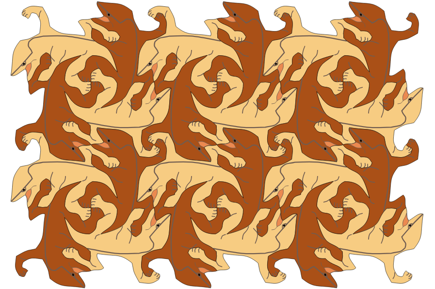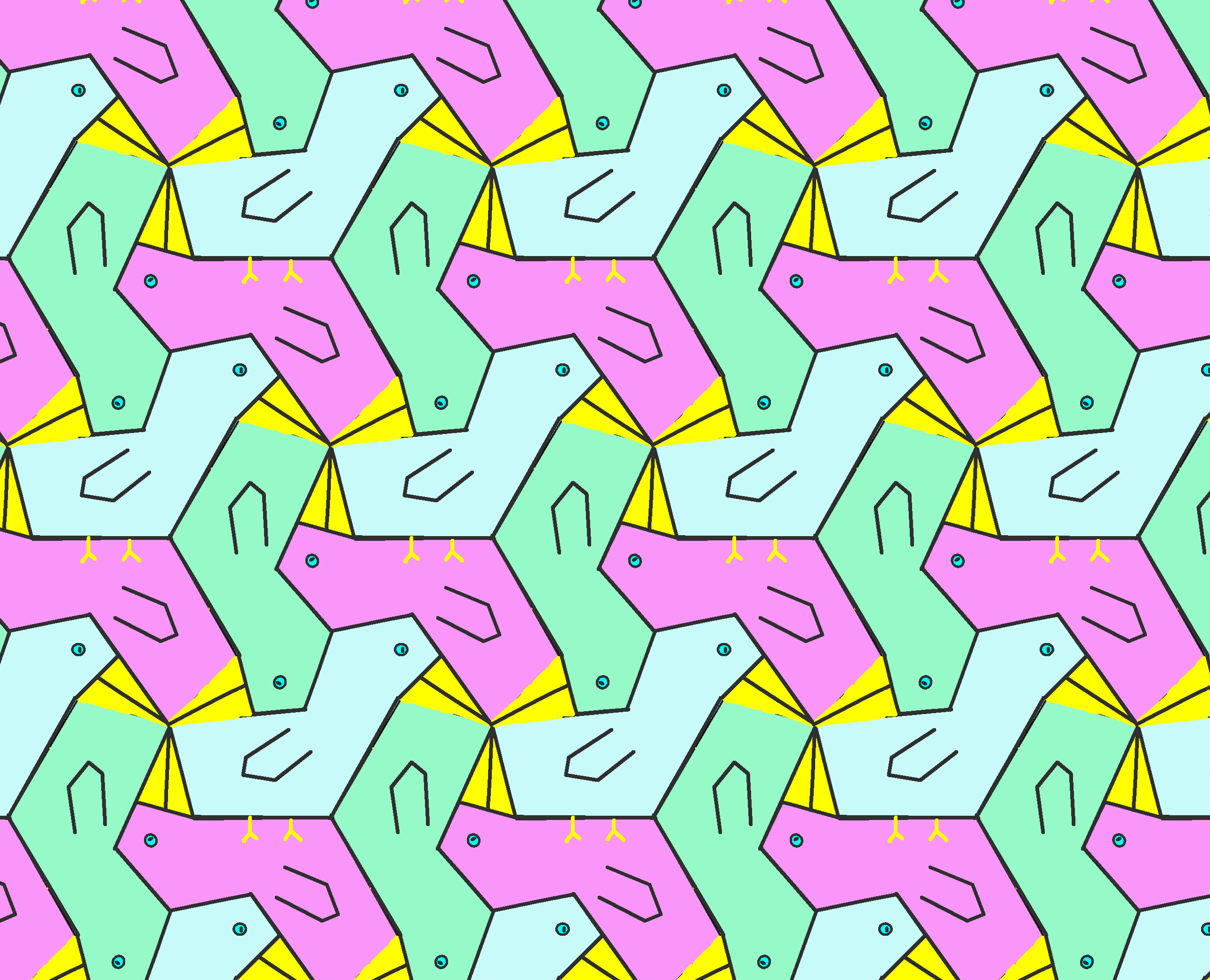TessMaker makes it easy to create 13 different types of tessellation, classified by their "Heesch type". For example we can make designs in the style of Maurits Escher.